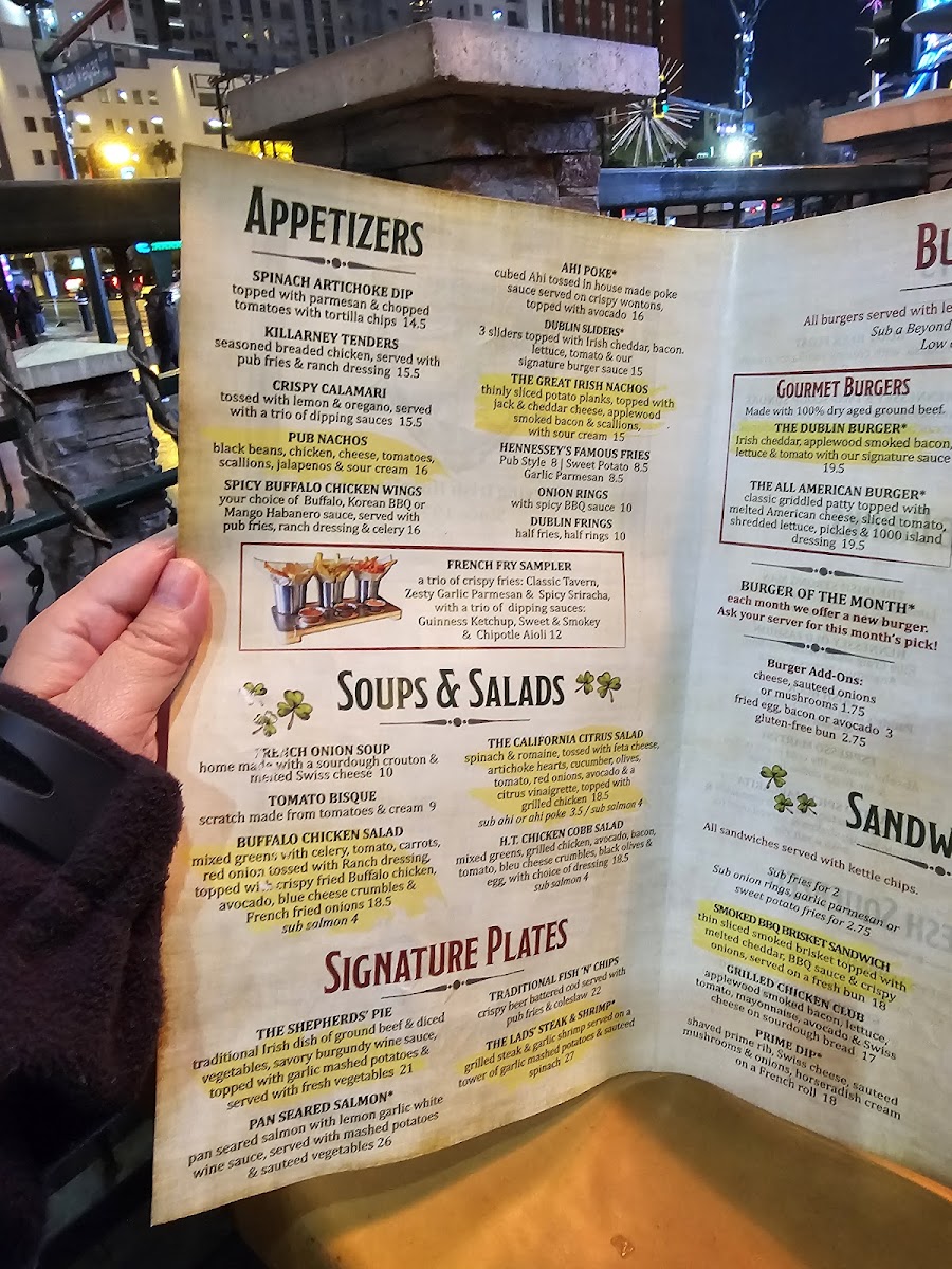 Dining Atmosphere: Step inside, and you’ll find an inviting ambiance with an authentic pub vibe. The interior is adorned with elements that pay homage to Irish heritage, while plenty of TVs around offer a perfect setting for sports enthusiasts. Customer Aaron B, a self-proclaimed foodie, emphasizes that the atmosphere is lively and never dull, especially from the outdoor patio that overlooks the iconic Fremont Street, making it an ideal spot to relax and soak in the festive energy.